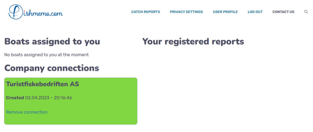 As soon as the company has assigned you with a boat, it will appear in your Fishmemo dashboard, ready for you to send catch reports from the boat.